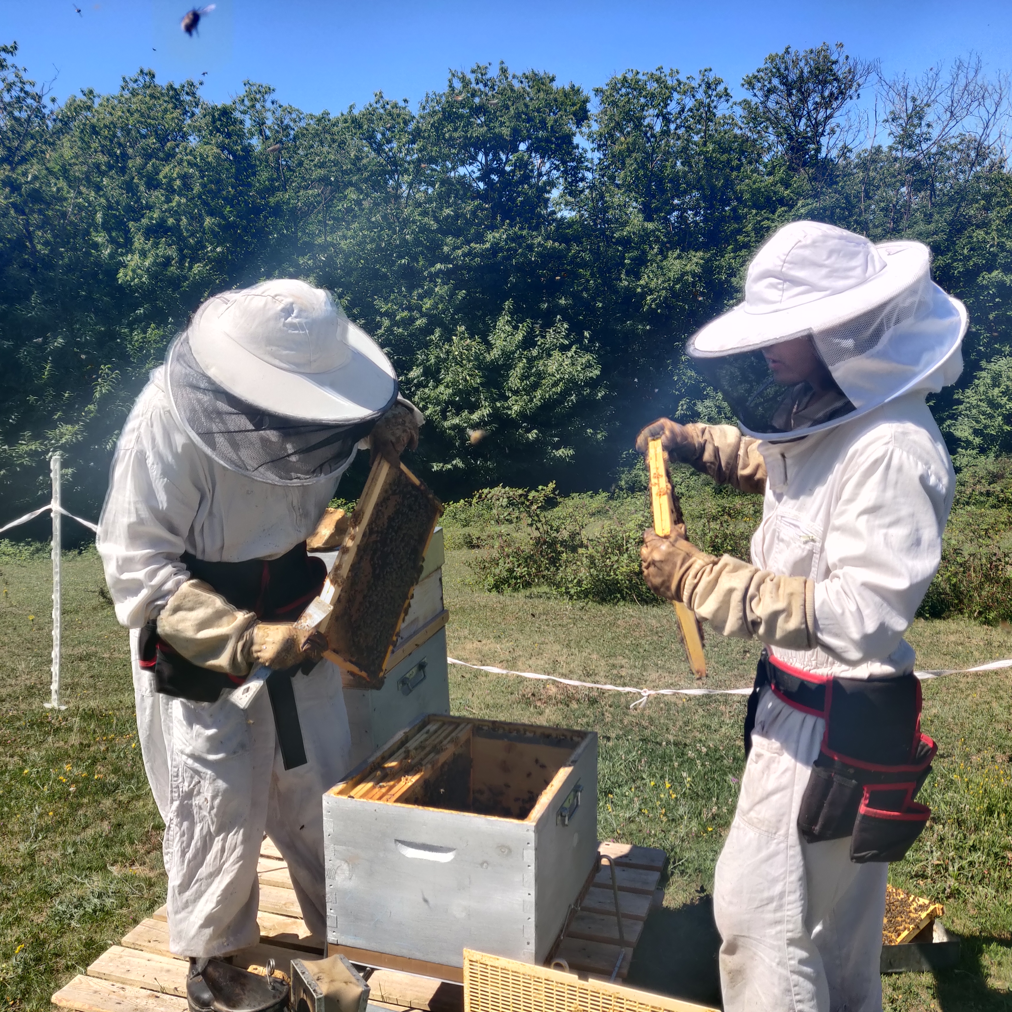Les ailes contiennent des nervures contenant des vaisseaux de l’hémolymphe. (le sang) Des crochets entre les ailes postérieures et inférieures permettent d’avoir un seul plan pendant le vol et de les replier en rentrant dans la ruche.